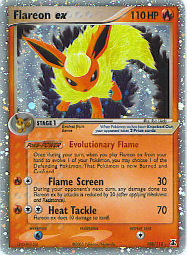 [CR] Flame Screen (30) During your opponent's next turn, any damage done to Flareon EX by attacks is reduced by 20 (after applying Weakness and Resistance).