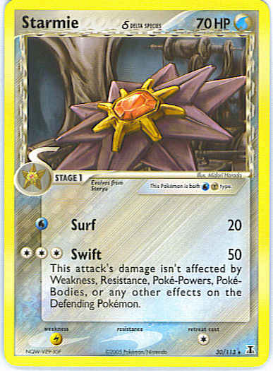 Type | Water | Pokemon serie | Delta Species | Stadie | Stage 1 | HP | 70 | Sjældenhed | Rare | Tilbagetrækning | 1 | Svaghed | L | Kortnummer | 30 | Evne |