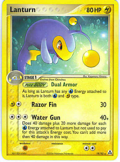 [CCC] Water Gun (40+) Does 40 damage plus 20 more damage for each W Energy attached to Lanturn but not used to pay for this attack's Energy cost. You may not add more than 40 damage in this way.