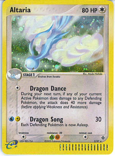 Type | Colorless | Pokemon serie | Dragon | Stadie | Stage 1 | HP | 80 | Sjældenhed | Rare | Tilbagetrækning | 1 | Modstand | FG | Svaghed | C | Kortnummer | 2 | Evne |