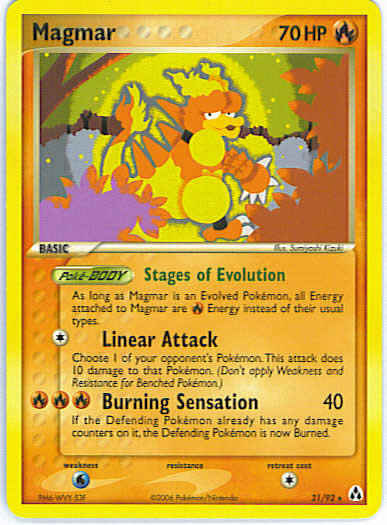 Type | Fire | Pokemon serie | Legend Maker | Stadie | Basic | HP | 70 | Sjældenhed | Rare | Tilbagetrækning | 1 | Svaghed | W | Kortnummer | 21 | Evne |