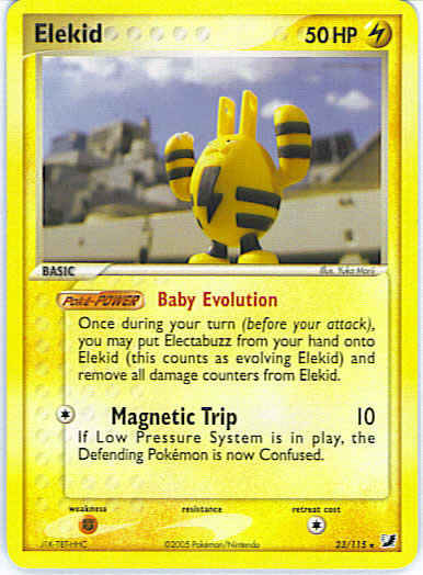 Type | Lightning | Pokemon serie | Unseen Forces | Stadie | Basic | HP | 50 | Sjældenhed | Rare | Tilbagetrækning | 1 | Svaghed | F | Kortnummer | 23 | Evne |