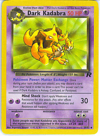 Type | Psychic | Pokemon serie | Team Rocket | Stadie | Stage 1 | HP | 50 | Sjældenhed | Uncommon | Tilbagetrækning | 2 | Svaghed | P | Kortnummer | 39 | Evne |