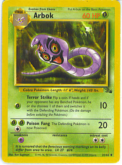 Type | Grass | Pokemon serie | Fossil | Stadie | Stage 1 | HP | 60 | Sjældenhed | Uncommon | Tilbagetrækning | 2 | Svaghed | P | Kortnummer | 31 | Evne |