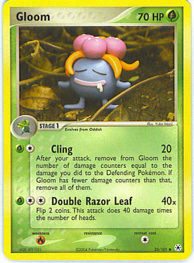 [CG] Cling (20) After your attack, remove from Gloom the number of damage counters equal to the damage you did to the Defending Pokemon. If Gloom has fewer damage counters than that, remove all of them.