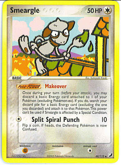 Type | Colorless | Pokemon serie | Unseen Forces | Stadie | Basic | HP | 50 | Sjældenhed | Uncommon | Tilbagetrækning | 1 | Svaghed | F | Kortnummer | 48 | Evne | [C] Split Spiral Punch (10) Flip a coin. If heads, the Defending Pokemon is now Confused. | Evne2 | [C] Split Spiral Punch (10) Flip a coin. If heads, the Defending Pokemon is now Confused. | Kunstner | Sumiyoshi Kizuki |