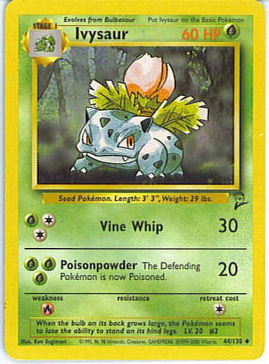 Type | Grass | Pokemon serie | Base Set 2 | Stadie | Stage 1 | HP | 60 | Sjældenhed | Uncommon | Tilbagetrækning | 1 | Svaghed | R | Kortnummer | 44 | Evne |
