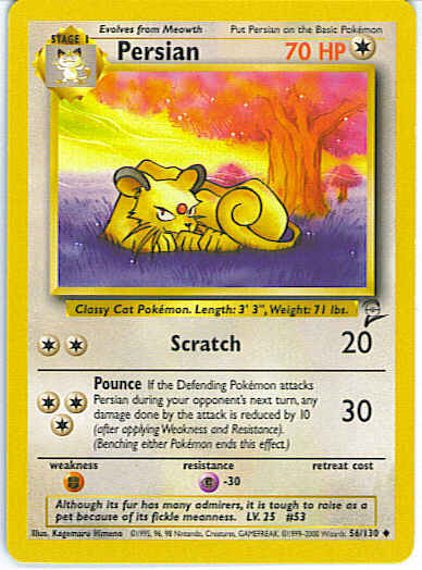 [CCC] Pounce (30) If the Defending Pokemon attacks Persian during your opponent's next turn, any damage done by the attack is reduce by 10 (after applying Weakness and Resistance). (Benching either Pokemon ends this effect.)