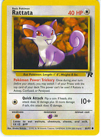 Type | Colorless | Pokemon serie | Team Rocket | Stadie | Basic | HP | 40 | Sjældenhed | Common | Modstand | P | Svaghed | F | Kortnummer | 66 | Evne |