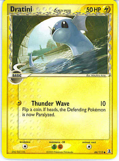 Type | Lightning | Pokemon serie | Delta Species | Stadie | Basic | HP | 50 | Sjældenhed | Common | Tilbagetrækning | 1 | Modstand | FG | Svaghed | C | Kortnummer | 66 | Evne | [L] Thunder Wave (10) Flip a coin. If heads, the Defending Pokemon is now Paralyzed. | Evne2 | [L] Thunder Wave (10) Flip a coin. If heads, the Defending Pokemon is now Paralyzed. | Kunstner | Mitsuhiro Arita |