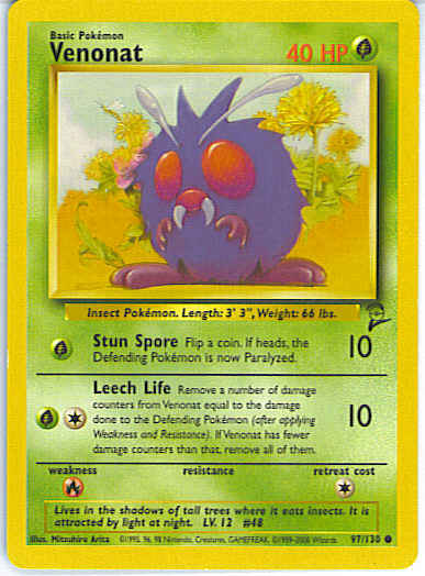 [CG] Leech Life (10) Remove a number of damage counters from Venonat equal to the damage done to the Defending Pokemon (after applying Weakness and Resistance).
