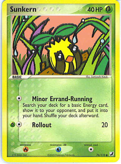 Type | Grass | Pokemon serie | Unseen Forces | Stadie | Basic | HP | 40 | Sjældenhed | Common | Tilbagetrækning | 1 | Modstand | W | Svaghed | R | Kortnummer | 76 | Evne | [C] Minor Errand-Running - Search your deck for a basic Energy card, show it to your opponent, and put it into your hand. Shuffle your deck afterward. [CG] Rollout (20) | Evne2 | [C] Minor Errand-Running - Search your deck for a basic Energy card, show it to your opponent, and put it into your hand. Shuffle your deck afterward. [CG] Rollout (20) | Kunstner | Sumiyoshi Kizuki |