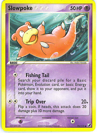 Type | Psychic | Pokemon serie | Unseen Forces | Stadie | Basic | HP | 50 | Sjældenhed | Common | Tilbagetrækning | 1 | Svaghed | P | Kortnummer | 72 | Evne | [C] Fishing Tail - Search your discard pile for a Basic Pokemon, Evolution card, or basic Energy card, show it to your opponent, and put it into your hand. [CC] Trip Over (20+) Flip a coin. If heads, this attack does 20 damage plus 10 more damage. | Evne2 | [C] Fishing Tail - Search your discard pile for a Basic Pokemon, Evolution card, or basic Energy card, show it to your opponent, and put it into your hand. [CC] Trip Over (20+) Flip a coin. If heads, this attack does 20 damage plus 10 more damage. | Kunstner | Midori Harada |