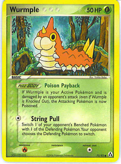Type | Grass | Pokemon serie | Legend Maker | Stadie | Basic | HP | 50 | Sjældenhed | Common | Tilbagetrækning | 1 | Svaghed | R | Kortnummer | 70 | Evne | [C] String Pull - Switch 1 of your opponent's Benched Pokemon with 1 of the Defending Pokemon. Your opponent chooses the Defending Pokemon to switch. | Evne2 | [C] String Pull - Switch 1 of your opponent's Benched Pokemon with 1 of the Defending Pokemon. Your opponent chooses the Defending Pokemon to switch. | Kunstner | Yukiko Baba |