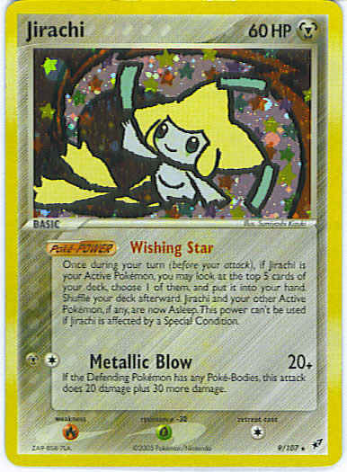 Type | Metal | Pokemon serie | Deoxys | Stadie | Basic | HP | 60 | Sjældenhed | Rare | Tilbagetrækning | 1 | Modstand | G | Svaghed | R | Kortnummer | 9 | Evne |