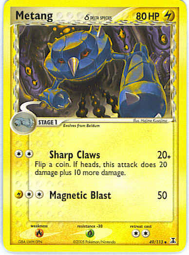 Type | Lightning | Pokemon serie | Delta Species | Stadie | Stage 1 | HP | 80 | Sjældenhed | Uncommon | Tilbagetrækning | 2 | Modstand | G | Svaghed | R | Kortnummer | 49 | Evne |