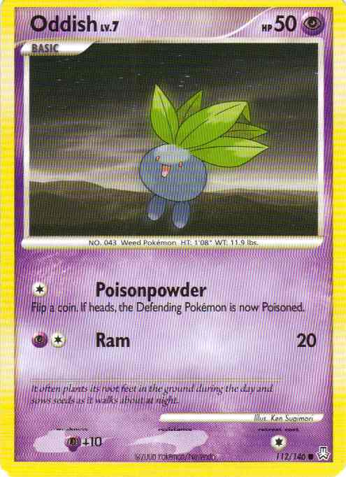 Type | Psychic | Pokemon serie | Legends Awakened | Stadie | Basic | HP | 50.0 | Sjældenhed | Common | Tilbagetrækning | 1.0 | Svaghed | P+10 | Kortnummer | 112 | Evne | [C] Poisonpowder - Flip a coin. If heads, the Defending Pokemon is now Poisoned. [CP] Ram (20)