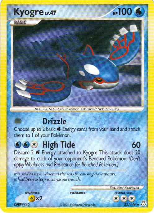 [CWW] High Tide (60) Discard 2 W Energy attached to Kyogre. This attack does 20 damage to each of your opponent's Benched Pokemon. (Don't apply Weakness and Resistance for Benched Pokemon.)