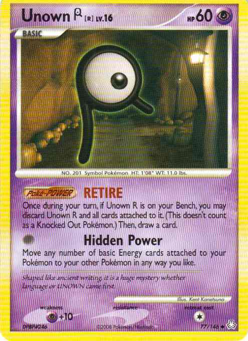 Type | Psychic | Pokemon serie | Legends Awakened | Stadie | Basic | HP | 60.0 | Sjældenhed | Uncommon | Tilbagetrækning | 1.0 | Svaghed | P+10 | Kortnummer | 77 | Evne | [0] Hidden Power - Move any number of basic Energy cards attached to your Pokemon to your other Pokemon in any way you like.