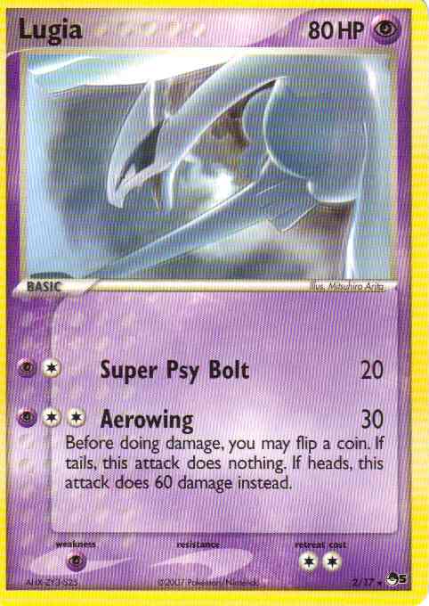 Type | Psychic | Pokemon serie | OP Series 5 | Stadie | Basic | HP | 80 | Sjældenhed | Rare | Tilbagetrækning | 2 | Svaghed | P | Kortnummer | 2 | Evne | [CP] Super Psy Bolt (20) [CCP] Aerowing (30) Before doing damage, you may flip a coin. If tails, this attack does nothing. If heads, this attack does 60 damage instead.