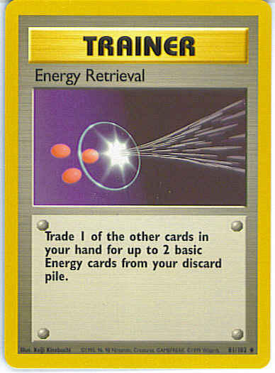 Trade 1 of other cards in your hand for up to 2 basic Energy cards from your discard pile.