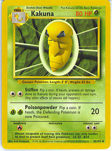 [CC] Stiffen - Flip a coin. If heads, prevent all damage done to Kakuna during opponent's next turn. (any other effects of attacks still happen.)