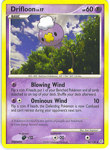 Type | Psychic | Pokemon serie | Diamond and Pearl | Stadie | Basic | HP | 60 | Sjældenhed | Uncommon | Tilbagetrækning | 1 | Modstand | C-20 | Svaghed | D+10 | Kortnummer | 46 | Evne |