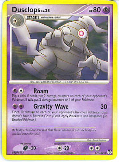 Type | Psychic | Pokemon serie | Diamond and Pearl | Stadie | Stage 1 | HP | 80 | Sjældenhed | Uncommon | Tilbagetrækning | 2 | Modstand | C-20 | Svaghed | D+20 | Kortnummer | 47 | Evne |