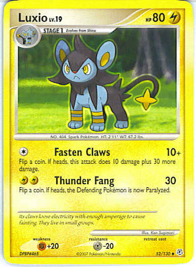 Type | Lightning | Pokemon serie | Diamond and Pearl | Stadie | Stage 1 | HP | 80 | Sjældenhed | Uncommon | Modstand | M-20 | Svaghed | F+20 | Kortnummer | 52 | Evne |