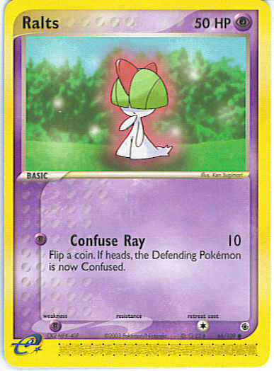 Type | Psychic | Pokemon serie | Ruby Sapphire | Stadie | Basic | HP | 50 | Sjældenhed | Common | Tilbagetrækning | 1 | Svaghed | P | Kortnummer | 66 | Evne | [P] Confuse Ray (10) Flip a coin. If heads, the Defending Pokemon is now Confused.