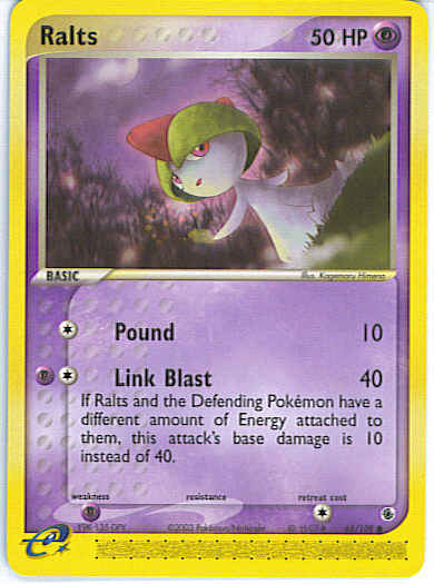 | Evne2 | [C] Pound (10) [CP] Link Blast (40) If Ralts and the Defending Pokemon have a different amount of Energy attached to them, this attack's base damage is 10 instead of 40.