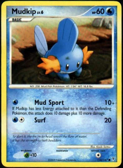 [W] Mud Sport (10+) If Mudkip has less Energy attached to it than the Defending Pokemon, this attack does 10 damage plus 10 more damage.