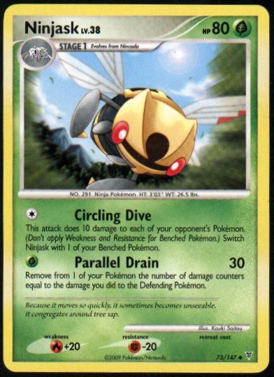 [C] Circling Dive - This attack does 10 damage to each of your opponent's Pokemon. (Don't apply Weakness and Resistance for Benched Pokemon.) Switch Ninjask with 1 of your Benched Pokemon.