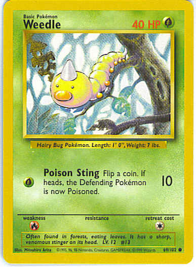 Type | Grass | Pokemon serie | Base | Stadie | Basic | HP | 40 | Sjældenhed | Common | Tilbagetrækning | 1 | Svaghed | R | Kortnummer | 69 | Evne |