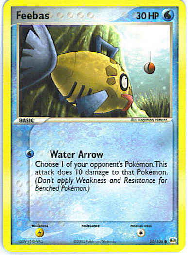 Type | Water | Pokemon serie | Emerald | Stadie | Basic | HP | 30 | Sjældenhed | Common | Tilbagetrækning | 1 | Svaghed | L | Kortnummer | 50 | Evne | [W] Water Arrow - Choose 1 of your opponent's Pokemon. This attack does 10 damage to that Pokemon. (Don't apply Weakness and Resistance for Benched Pokemon.) | Evne2 | [W] Water Arrow - Choose 1 of your opponent's Pokemon. This attack does 10 damage to that Pokemon. (Don't apply Weakness and Resistance for Benched Pokemon.) | Kunstner | Kagemaru Himeno |