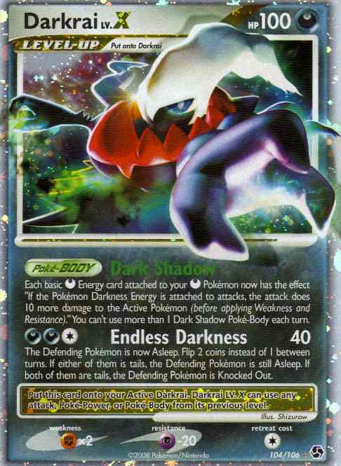 Type | Darkness | Pokemon serie | Great Encounters | Stadie | Level Up | HP | 100.0 | Sjældenhed | Ultra-Rare | Tilbagetrækning | 1.0 | Svaghed | Fx2 | Kortnummer | 104 | Evne |