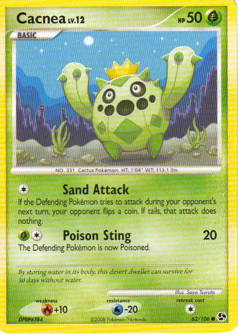 Type | Grass | Pokemon serie | Great Encounters | Stadie | Basic | HP | 50.0 | Sjældenhed | Common | Tilbagetrækning | 1.0 | Modstand | W-20 | Svaghed | R+10 | Kortnummer | 62 | Evne |
