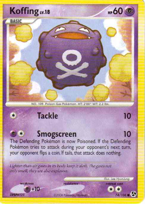 [CP] Smogscreen (10) The Defending Pokemon is now Poisoned. If the Defending Pokemon tries to attack during your opponent's next turn, your opponent flips a coin. If tails, that attack does nothing.