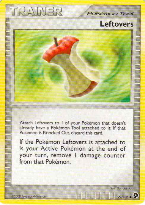 If the Pokemon Leftovers is attached to is your Active Pokemon at the end of your turn, remove 1 damage counter from that Pokemon.