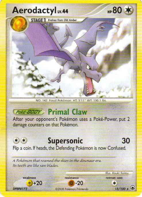 Type | Colorless | Pokemon serie | Majestic Dawn | Stadie | Stage 1 | HP | 80.0 | Sjældenhed | Rare | Tilbagetrækning | 1.0 | Modstand | F-20 | Svaghed | L+20 | Kortnummer | 15 | Evne | [CC] Supersonic (30) Flip a coin. If heads, the Defending Pokemon is now Confused.