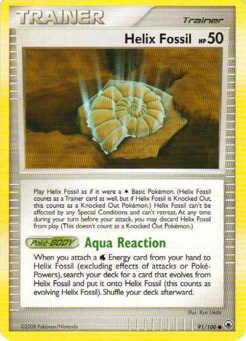 Type | Trainer | Pokemon serie | Majestic Dawn | Stadie | Trainer | HP | 50.0 | Sjældenhed | Common | Kortnummer | 91 | Evne | of attacks or Poke-Powers), search your deck for a card that evolves from Helix Fossil and put it onto Helix Fossil (this counts as evolving Helix Fossil). Shuffle your deck afterward. (Poke-BODY)