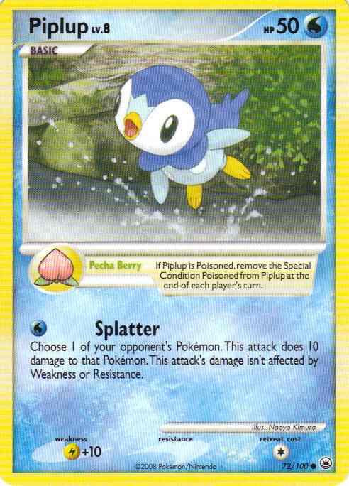 Type | Water | Pokemon serie | Majestic Dawn | Stadie | Basic | HP | 50.0 | Sjældenhed | Common | Tilbagetrækning | 1.0 | Svaghed | L+10 | Kortnummer | 72 | Evne | [W] Splatter - Choose 1 of your opponent's Pokemon. This attack does 10 damage to that Pokemon. This attack's damage isn't affected by Weakness or Resistance.