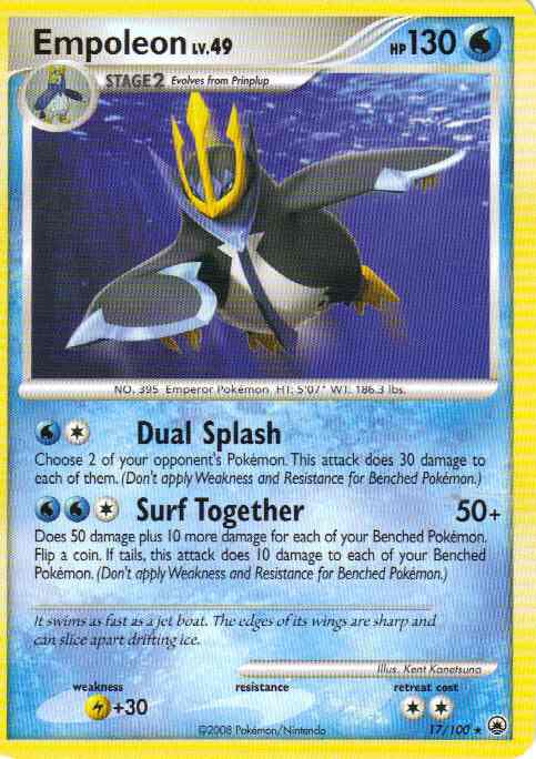 Evne [CW[ Dual Splash - Choose 2 of your opponent's Pokemon. This attack does 30 damage to each of them. (Don't apply Weakness and Resistance for Benched Pokemon.)