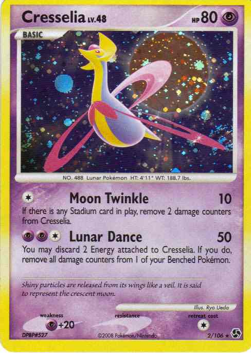 [C] Moon Twinkle (10) If there is any Stadium card in play, remove 2 damage counters from Cresselia.