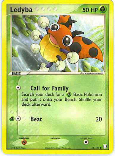 Type | Grass | Pokemon serie | Team Rocket Returns | Stadie | Basic | HP | 50 | Sjældenhed | Common | Tilbagetrækning | 1 | Svaghed | R | Kortnummer | 64 | Evne | [C] Call for Family - Search your deck for a Grass Basic Pokemon and put it onto your Bench. Shuffle your deck afterward. [CG] Beat (30) | Evne2 | [C] Call for Family - Search your deck for a Grass Basic Pokemon and put it onto your Bench. Shuffle your deck afterward. [CG] Beat (30) | Kunstner | Kagemaru Himeno |