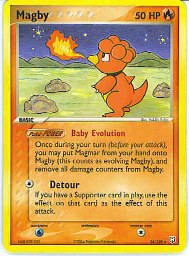 Type | Fire | Pokemon serie | Team Rocket Returns | Stadie | Basic | HP | 50 | Sjældenhed | Rare | Tilbagetrækning | 1 | Svaghed | W | Kortnummer | 24 | Evne | [C] Detour - If you have a Supporter card in play, use the effect on that card as the effect of this attack. | Evne2 | [C] Detour - If you have a Supporter card in play, use the effect on that card as the effect of this attack. | Kunstner | Yukiko Baba |
