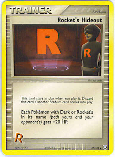 Each Pokemon in play with Dark or Rocket's in its name (both yours and your opponent's) gets +20 HP.