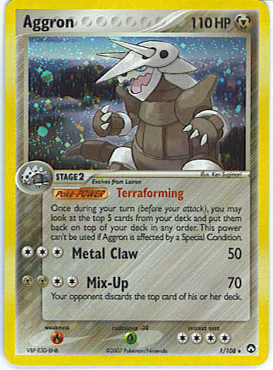 Type | Metal | Pokemon serie | Power Keepers | Stadie | Stage 2 | HP | 110 | Sjældenhed | Rare | Tilbagetrækning | 4 | Modstand | G | Svaghed | R | Kortnummer | 1 | Evne |