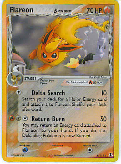 Evne [C] Delta Search (10) Search your deck for a Holon Energy card and attach it to Flareon. Shuffle your deck afterward.