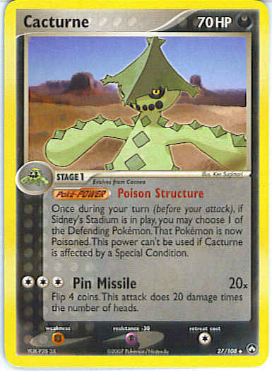 Type | Darkness | Pokemon serie | Power Keepers | Stadie | Stage 1 | HP | 70 | Sjældenhed | Uncommon | Tilbagetrækning | 1 | Modstand | P | Svaghed | F | Kortnummer | 27 | Evne |